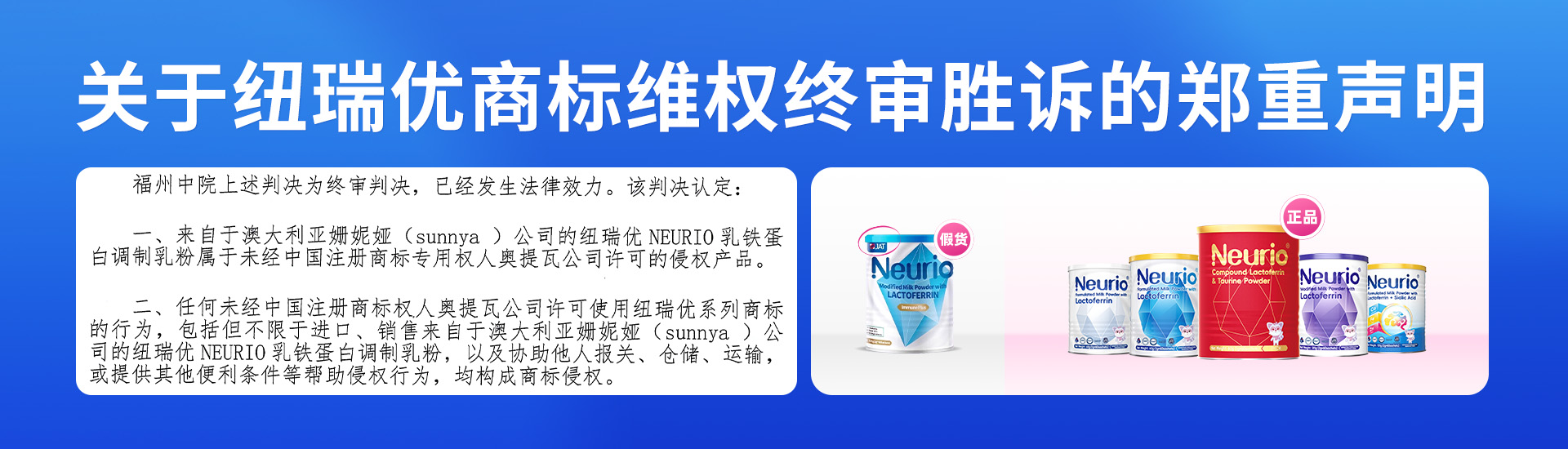 Neurio (中文品牌名:紐瑞優(yōu))意即 “New for You(創(chuàng)新為你)” ,自2011年品牌創(chuàng)建以來, 秉承“創(chuàng)新為你·健康至上” 的理念,讓健康伴隨生活。 紐瑞優(yōu)Neurio產品從國際引入中國,快速落地生根,并在中國實現品牌騰飛!紐瑞優(yōu)持續(xù)努力將自己打造為一個國際知名品牌,前期主要以澳新產品為主,現已轉型為以國際產品為主,并堅定不移深耕中國本土化產品,擴大國際營銷, 實現從國際引進中國,再從中國走向國際,讓紐瑞優(yōu)品牌再上一個新的臺階! 自2015年,紐瑞優(yōu)團隊經過不懈努力成功研發(fā)紐瑞優(yōu)乳鐵蛋白系列調制乳粉,奉獻給熱愛健康的人們。 紐瑞優(yōu)團隊專注大健康理念,包括孕產婦與胎兒健康,兒童青少年的健康成長以及中老年人的健康營養需求,不斷推陳出新,為大健康理念貢獻自己的一份力量。 紐瑞優(yōu)永不止步,不斷探索和追尋更新的健康理念,不斷自我超越追求更高的目標, 不斷努力研發(fā)生產符合市場需求的質優(yōu)價美產品,滿足人們對健康和高品質生活的追求!
